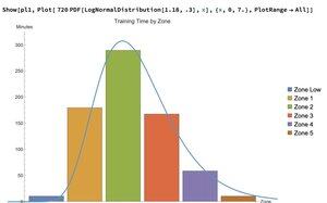 KARDIOLOGI DUJOUR Tilpasset en lognormalkurve til en uke med sykling i moderat kupert terreng, totalt ~800 minutter (14 t). Du får din «Sone 2», din norske 4 x 4, og alle andre markedsførte pseudokategorier samlet i ett, naturligvis, uten engang å merke at du trener.