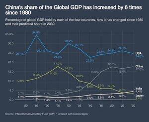 Kinas andel av verdens BNP har økt seks ganger siden 1980