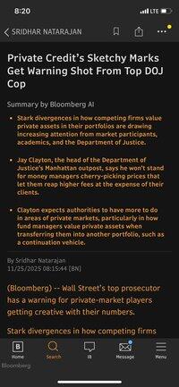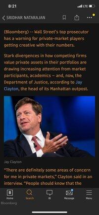 NYHETER: SDNY-sjef (og tidligere SEC-leder) Jay Clayton sier at DOJ gransker private equity-verdsettelser og advarer mot at kapitalforvaltere velger urealistiske priser for å oppnå høyere gebyrer. Flere detaljer om @theterminal. Rapportering av @sridinats