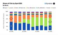 Lansert i mars ble @Pumpfun den #1 spot-DEX målt på beregningskraft i juni. I oktober utgjorde den 40 % av CU-ene brukt av spot-DEX-er.