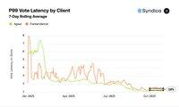Frankendancer-validatorene viste 18 % høyere p99-stemmeforsinkelse i oktober, i tråd med gjennomsnittlig gap som har vært opprettholdt siden juli.