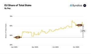 20/EU har 61 % av validator-andelen, opp fra 48 % i januar.