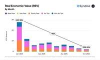 REV (transaksjonsgebyrer og tips for transaksjonsinkludering) falt fra 2,8 millioner $SOL i januar til 232 000 $SOL i oktober.