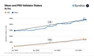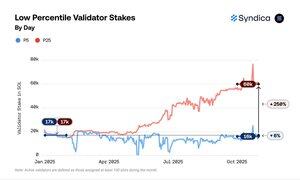 I oktober vokste p25-validatorene til 60 000 $SOL (+250 %), mens p5 falt til 16 000 $SOL (-6 %).