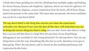 En veldig Einstein-lignende uttalelse her om verdien av skjønnhet og top-down-syn i forskning:
