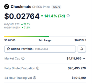 GCheh. +141 % (7d) 2 millioner daglige volontanter $CHECK, kompis.