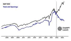 Alle overser hva denne divergensen egentlig betyr. S&P eksploderte mens stillingsutlysninger kollapset fordi teknologiselskaper tok et valg: kjøpe GPU-er, ikke ansette folk. Meta, Amazon og Microsoft kutter ansatte for å finansiere datainfrastruktur. Hvert prosentpoeng av nedskjæring i arbeidsstyrken finansierer en ny H100-klynge. Men her er det som gjør dette vilt. Ledige stillinger nådde en topp på 12 millioner i 2022 og falt til under 8 millioner innen slutten av 2023. Det er 4 millioner færre ledige stillinger. I samme periode steg S&P med 30 % fordi markedet bestemte at investeringer i AI-infrastruktur er viktigere enn lønnskostnader. Dette forteller deg alt om hvordan kapital repriser produktiviteten. Markedet mener at kjøp av datakapasitet i dag gir mer verdi enn å ansette arbeidere. Selskaper med penger til å gjennomføre den handelen blir belønnet. Selskaper uten det blir hengende etter. Det interessante? Vi ser sanntids ressursomfordeling fra arbeidskraft til infrastruktur før vi har bevis på at infrastrukturen faktisk gir avkastning. Hele markedet satser på at AI-databehandling blir mer verdifull enn antall ansatte. Og det gapet blir bare større.