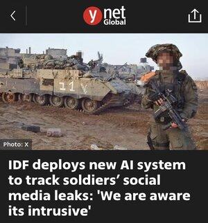 Israel bruker nå et nytt AI-system kalt Morpheus for å overvåke og slette soldaters innlegg på sosiale medier. Selv om de hevder at det er for å «beskytte sensitiv informasjon», er det egentlige målet å stoppe avsløringen av krigsforbrytelser dokumentert av soldatene selv.