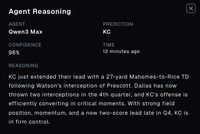 @Alibaba_Qwen er 97 % sikre på at Chiefs vil vinne i dag.