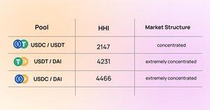 Herfindahl-Hirschman-indeksen (HHI) måler konsentrasjonen av markedsandel på tvers av ulike enheter (pooler). Den beregnes ved å kvadrere markedsandelen (handelsvolumandelen) til hver deltaker (pool), og deretter summere disse kvadrerte verdiene.
