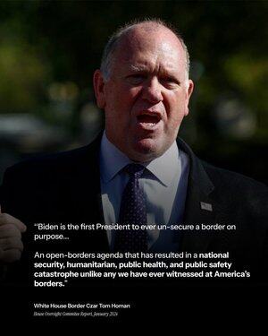 Grensesjef Tom Homan sa det best i januar 2024: den katastrofale katastrofen med den mislykkede Biden-administrasjonens åpne grensepolitikk korrelerer direkte med et utrygt og usikkert land.