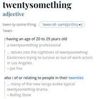 Også, da jeg undersøkte grammatikken for dette innlegget, kom jeg over at ordet 'twentysomething' skrives som ett ord, mens 'forty-something' skrives med bindestrek.