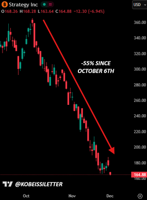 BREAKING: MicroStrategy, $MSTR, faller over -7 % på dagen til sitt laveste nivå siden oktober 2024.