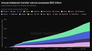 🚨⛓️ BREAKING: Årlig stablecoin-overføringsvolum overstiger 50 billioner dollar.