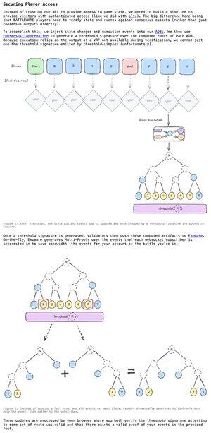 Eller Battleware. Den tillot enhver validator å laste opp hendelsesbevis (opprettet etter kjøring på grunn av Timelock-kryptering) og deretter konvertere dem til multibevis på farten for å minimere båndbredden til spillere: