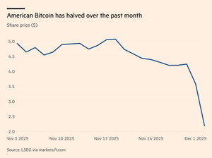 🚨AMERIKANSKE BITCOIN-AKSJER STUPER Trump-sønnens Bitcoin-satsing faller nesten 40 %, noe som utsletter omtrent 1 MILLIARD dollar i markedsverdi ettersom investorer selger etter at låsen utløper.
