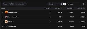 På lommeboksiden din kan du se en fullstendig oversikt over NFT-ene du eier, inkludert totalt antall og total verdi av hver samling du eier.