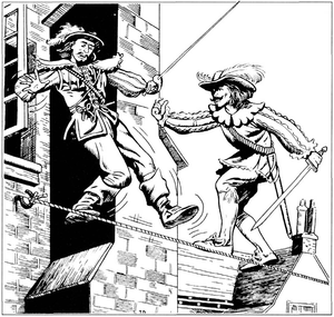 En karakter med akrobatikkferdighetene kan utføre imponerende bragder, som å balansere på stramme tau og ledninger (Terry Dykstra, D&D Rules Cyclopedia av Aaron Allston, TSR, 1991)