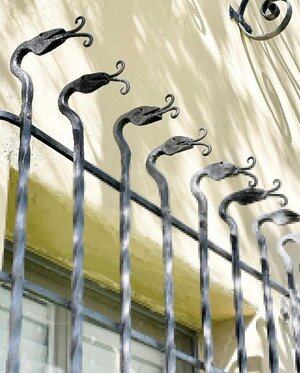 Store håndsmidde slangevindusgardiner på et hus i California
