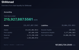 Som du kanskje kan gjette, betyr det at shMON verdt 187,8 millioner millioner tjener avkastningen på 211,0 millioner staked MON.