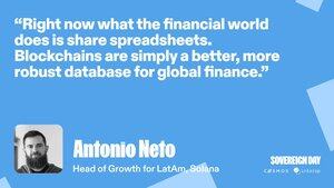 @solana Head of Growth LatAm @AntonioNetoSOL delt på Sovereign Day hvordan blockchain tilbyr en sikrere og mer robust database for global finans.