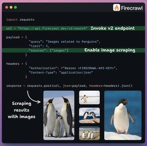 Firecrawls nyeste v2-endepunkt lar deg nå skrape visuelt innhold fra nettet for å bygge multimodale LLM-apper, finjustere LLM-er og mer.