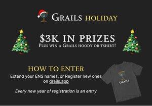 🎄GRAILS HOLIDAY:🎄 3 personer som utvider ENS-navnet sitt med Grails-appen denne måneden vil vinne *1000 dollar hver* og Grails-merch!