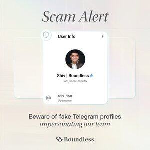 Varsel om bedrager: Boundless-teammedlemmer blir utgitt for å være på Telegram Vær forsiktig og dobbeltsjekk med vårt fellesskapsteam via offisielle kanaler før du interagerer med noen kontoer på TG Ta vare på deg selv, hold deg Boundless