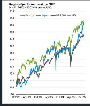 Europa og Japan fortsetter å overgå S&P 500 ex $NVDA JPMAM
