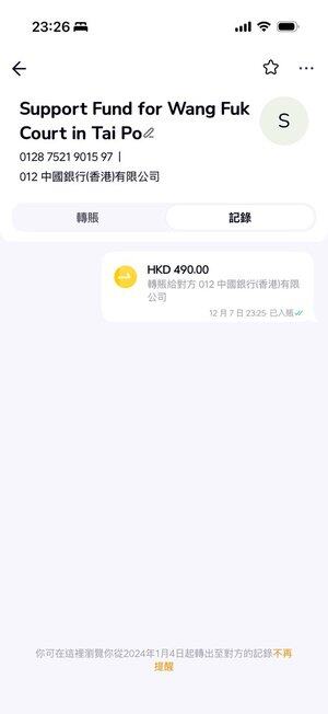 De første pengene fra BP til ZA Bank ble donert til Hong Kong Special Administrative Region Government's Tai Po Wang Fuk Court Aid Fund.