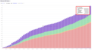 1/ Ethereum DEX-volumet har vært i en flerårig opptrend.