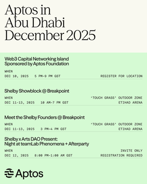 Aptos-økosystemet tar over Abu Dhabi Finance Week og Breakpoint for kontinuerlig kryptofordypning, fra institusjonell DeFi til internettbaserte dataløsninger med @shelbyserves.