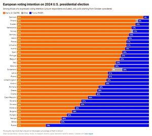 Europeisk stemmeintensjon ved det amerikanske presidentvalget i 2024. Det er interessant, noen overraskelser her?