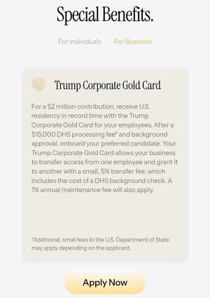 NETTOPP INN – Trumps Gold Card på 1 000 000 dollar går i bruk, en søker får lovlig permanent oppholdstillatelse som EB-1- eller EB-2-visuminnehaver: «En direkte vei til statsborgerskap for alle kvalifiserte og vurderte personer. SÅ SPENNENDE!"