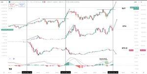 Den 1M MACD tikkende bearish på BTC er irrelevant og en etterslepende indikator, som du kan se, kan snu tilbake og fortsette til nye topper.
