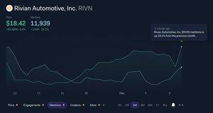 Rivian Automotive, Inc. nevner at de er opp 19,1 % fra forrige måned, ettersom prisen når et ettårsnivå.