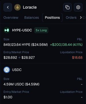 Akkurat nå er @loraclexyz veldig lang $HYPE og legger til mer. Ville ikke satset mot det.