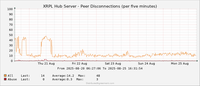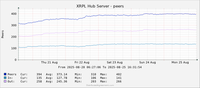 Na een week van solide werking had mijn hub een moeilijke dag. Maar het was om een zeer goede reden -- de switch waarmee het is verbonden heeft een enorme upgrade ontvangen en mijn bandbreedtemetingen zijn nu veel beter. Deze afbeeldingen tonen de solide werking. 1/2