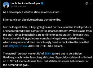 🪦ETH OBITUARY #116🪦 🗣️"Ethereum is een absolute afvaldump brand." - Oom Rockstar Ontwikkelaar, 2025-03-01 (X) | ETH Prijs: $2234.71