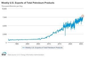 Refinery voor de wereld — vorige week heeft de VS een record van >7,3 miljoen vaten per dag aan geraffineerde petroleumproducten geëxporteerd (dat is meer dan het dubbele van het exporttarief van een decennium geleden)