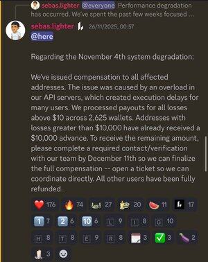 ik ben de tel kwijtgeraakt hoe vaak lighter in de afgelopen 2 maanden terugbetalingen aan gebruikers heeft moeten doen voor verloren fondsen door systeemdegradatie. Als HL nu een van deze incidenten had, zou de hele CT er op dansen