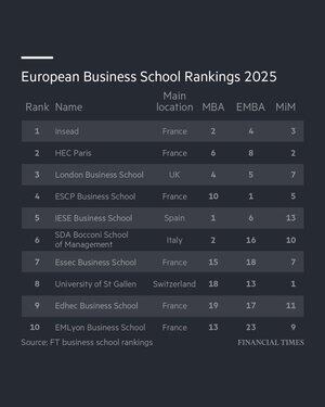 FT Europese Business Schools Ranking 2025: welke scholen stonden het hoogst genoteerd?