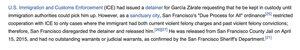 In 2015 werd de Amerikaanse burger Kate Steinle in San Francisco vermoord door een illegale immigrant. De illegale was eerder vijf keer gedeporteerd en was slechts enkele maanden voor de moord op Kate in de gevangenis in San Francisco. ICE had een detentiebevel voor hem uitgevaardigd, maar de gevangenis negeerde dit omdat SF een toevluchtsoordstad is.