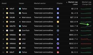 @Tether_to's XAUT0 op @Plasma, met een marktkapitalisatie die met +269,4% is gestegen in de afgelopen maand.