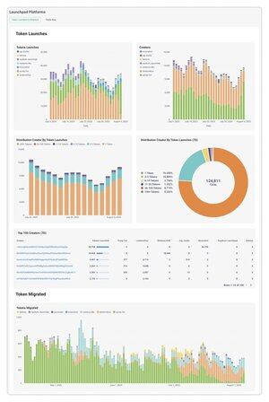 Oferując dane dotyczące najlepszych i głównych launchpadów na Solanie, ta tablica rozdzielcza przedstawia najważniejsze informacje o uruchomieniach tokenów, aktywności twórców i wynikach na launchpadach.