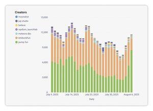 Większość została uruchomiona za pośrednictwem Letsbonkfun, ale 6 sierpnia Pumpfun powrócił, odpowiadając za 70,54% wszystkich uruchomień tokenów tego dnia.