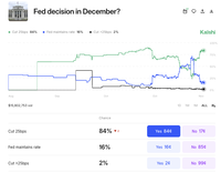 Kalshi informuje, że obecnie istnieje 84% szans, że obniżą stopy procentowe