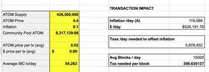 A 0,02 ATOM/tx, se houver 400 txs por bloco, o ATOM seria deflacionário a qualquer preço.