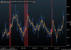 As preocupações com a segurança no emprego na pesquisa de consumidores da Universidade de Michigan estão nos níveis mais altos desde o verão de 2009, nas profundezas da Grande Recessão ()