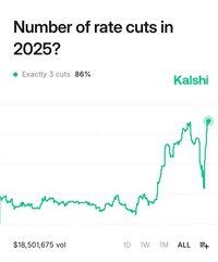 RECENTEMENTE: 🇺🇸 As probabilidades de 3 cortes de juros em 2025 atingiram um novo recorde histórico de 86%, por traders em Kalshi.